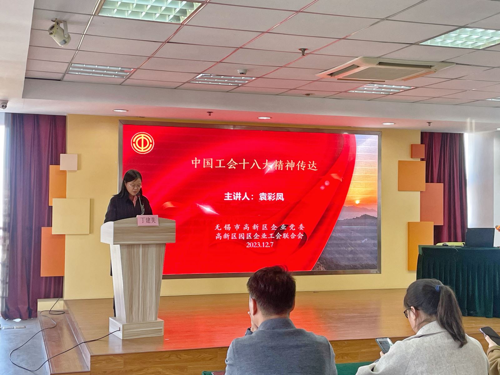 12月7日,高新区园区工会联合高新区企业党委外企党群服务中心召开中国工会十八大精神传达会,传达学习、宣传贯彻、部署落实中国工会十八大精神和相关工作。高新区园区工会主席丁建美、外企党群服务中心主任王少琴、园区部分企业党组织书记、工会主席、基层干部近70人参加。