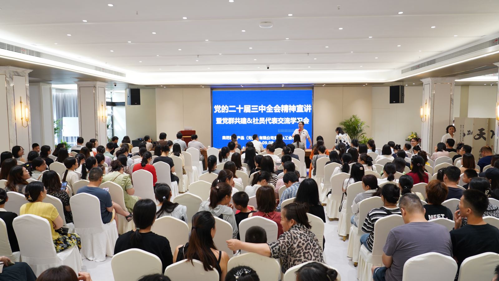 近日,索尼数字开展“党群共建暨职工代表交流学习会”。无锡高新区(新吴区)社会工作部副部长、两企三新党委书记秦向军、索尼数字总经理露木、部门长张泉、党委书记、工会主席吴圣法、党委副书记、工会副主席陈泓及党员代表、社员代表、受表彰的优秀工会积极分子、优秀志愿者、优秀团干部、优秀团员等共220余人参加。