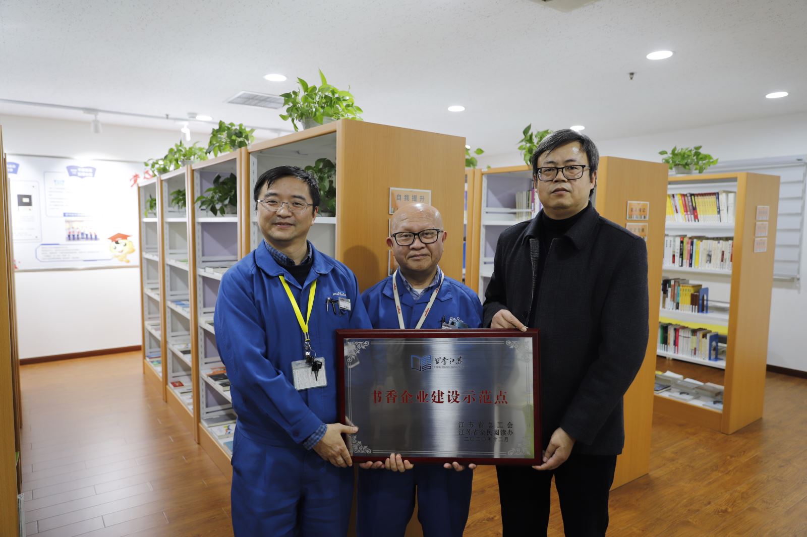 1月15日下午,无锡市总工会为我区荣获江苏省“书香企业”、“职工书屋”示范点的村田新能源和绿点科技分别进行了授牌。市总工会党组成员、副主席施宇星,宣教和网络工作部副部长陈煜蕾,新吴区总工会党组书记、副主席夏同军参加了授牌活动。