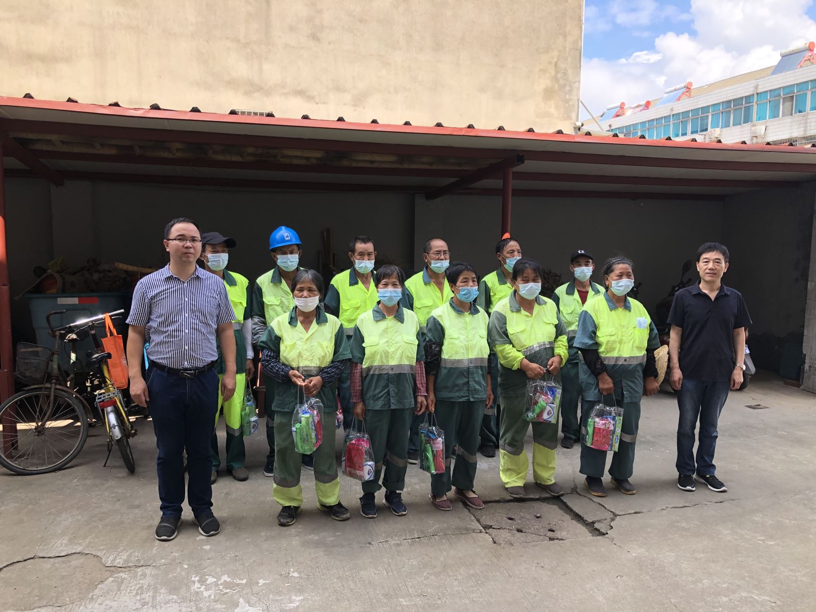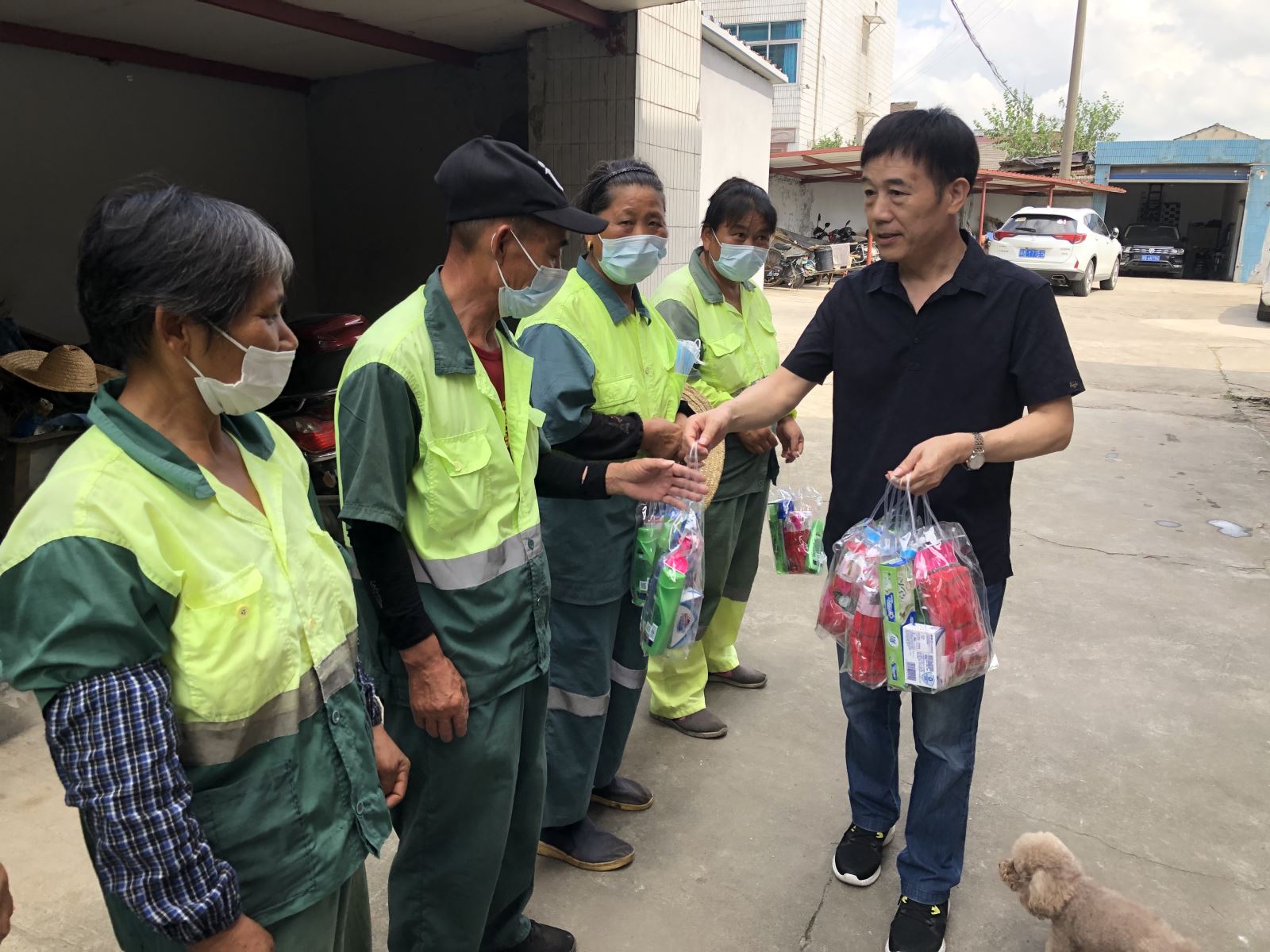 夏同军一行来到后宅环卫所,为环卫工人们送上沐浴露、花露水、洗手液、毛巾等防暑降温用品,向奋战在一线的环卫工人表示慰问。夏同军叮嘱大家在高温酷暑期间一定要合理安排工作,注意防止高温中暑,在疫情防控期间,一定要加强个人防护,戴好口罩、勤洗手、勤消毒,确保身体健康安全。