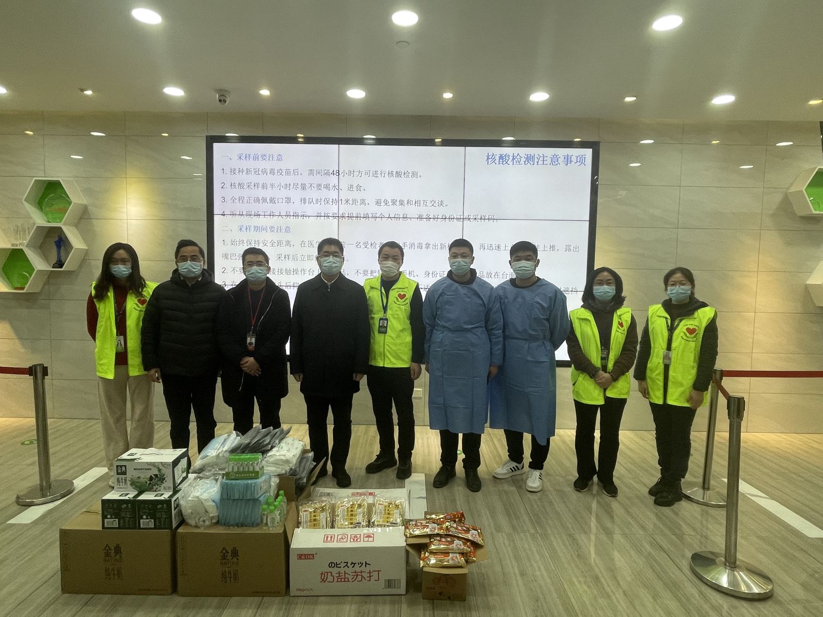 韩杨一行来到捷普绿点精密电子(无锡)有限公司核酸检测采样点,看望慰问参与核酸采样、检测工作的一线抗疫人员,为他们送去暖宝宝、防疫用品和牛奶、饼干等食品。韩杨向现场防疫负责人详细了解了核酸检测采样点的人员配备、场地设置、检测流程等有关情况,并嘱咐抗疫人员在做好核酸检测采样工作的同时要注重好自身防护工作。