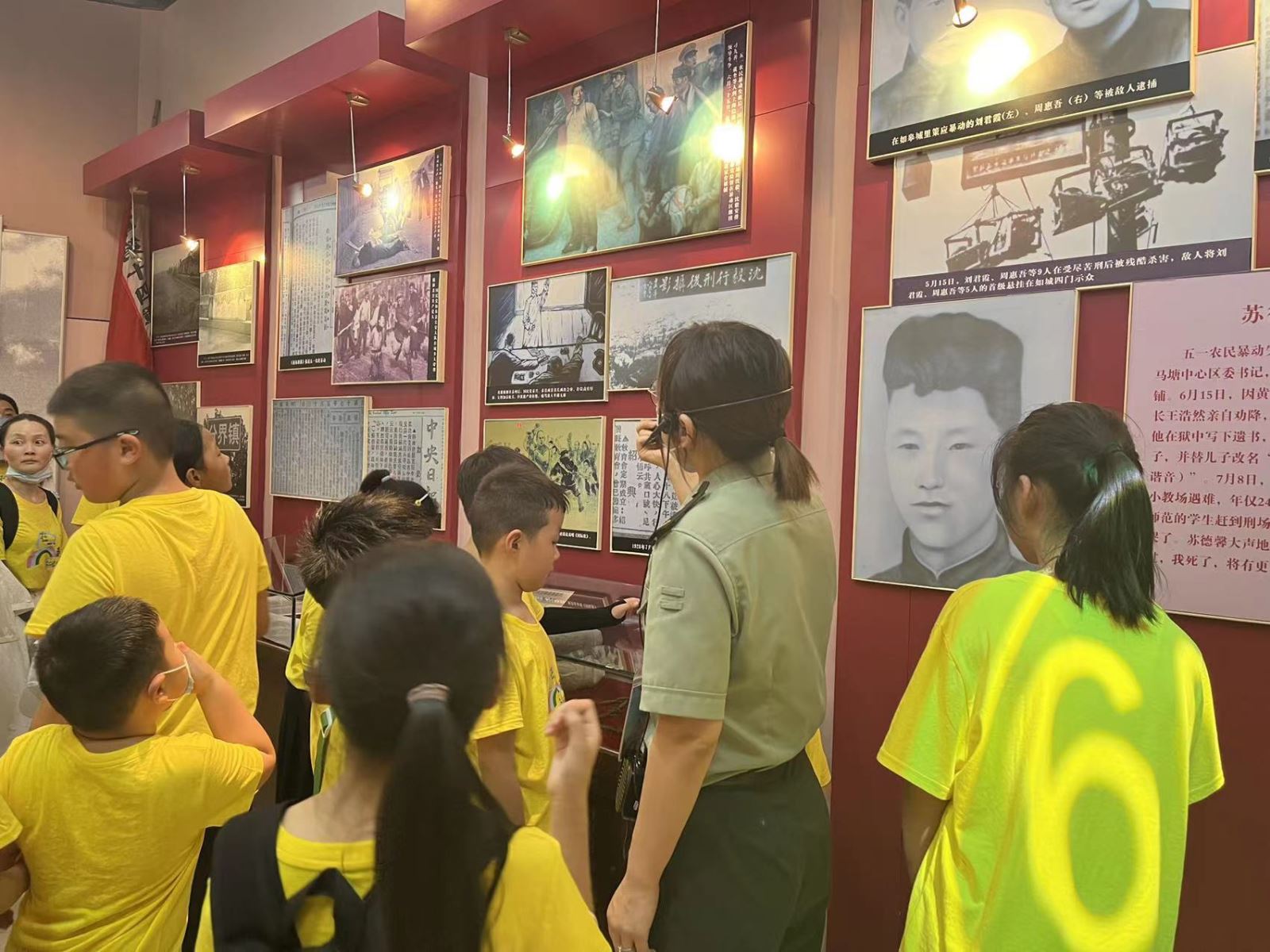在南通中国工农红军第十四军纪念馆,职工家长带着孩子共同参观了江海曙光、长夜惊雷、斩木举义、军旗如画、革故鼎新、金戈铁马、碧血丹心、野火春风等8个展厅,展厅内一张张泛黄的画卷、一个个珍贵的革命文物、一张张真实的历史照片、一沓沓厚重的历史资料,再现了红十四军的斗争路线以及土地革命时期的故事,诠释了伟大的红军精神......大家心怀对革命战士的敬仰与感激之情,近距离感受着那段艰苦斗争的岁月,体会到今天幸福生活的来之不易。