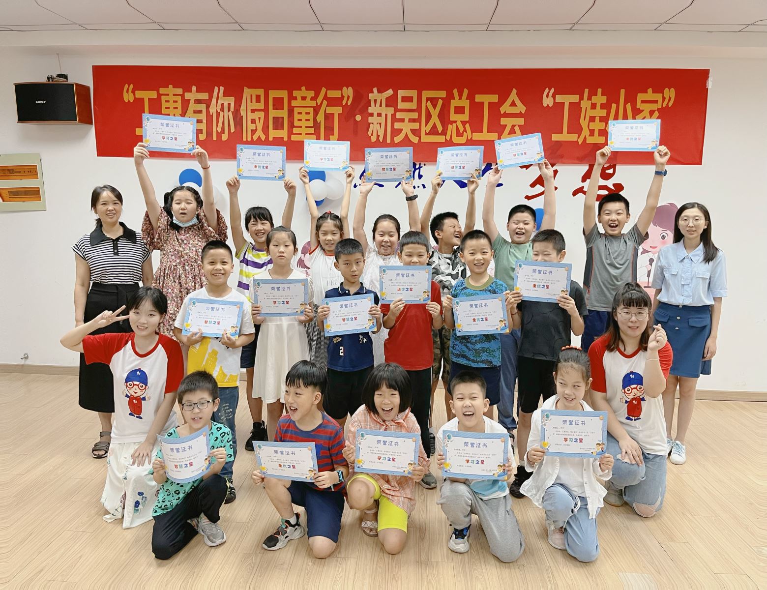 为进一步加强对职工子女的关心关爱,响应国家优化生育和“双减”政策,落实区委区政府的相关要求,切实帮助职工解决暑假子女“无人看护”问题,新吴区总工会开展了“工惠有你 假日童行”——新吴区总工会“工娃小家”托管服务。自开班以来,有将近40位职工子女在“工娃小家”度过了一个充实而有意义的假期。8月26日上午,新吴区总工会“工娃小家”结业仪式在新吴区总工会职工服务中心顺利举办,区总工会副主席周梦璇、托管班全体学生、部分家长代表及区总工会相关人员参加活动。