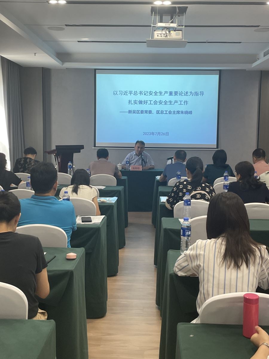7月26日上午,高新区党工委委员、新吴区委常委、区总工会主席朱晓峰在新吴区基层工会主席和工会工作者培训班上以“习近平总书记安全生产重要论述为指导扎实做好工会安全生产工作”为题作安全生产主题宣讲,街道(园区)工会负责人、经审委主任(区经审委员)、工会工作者和企业工会主席共100余人参加。