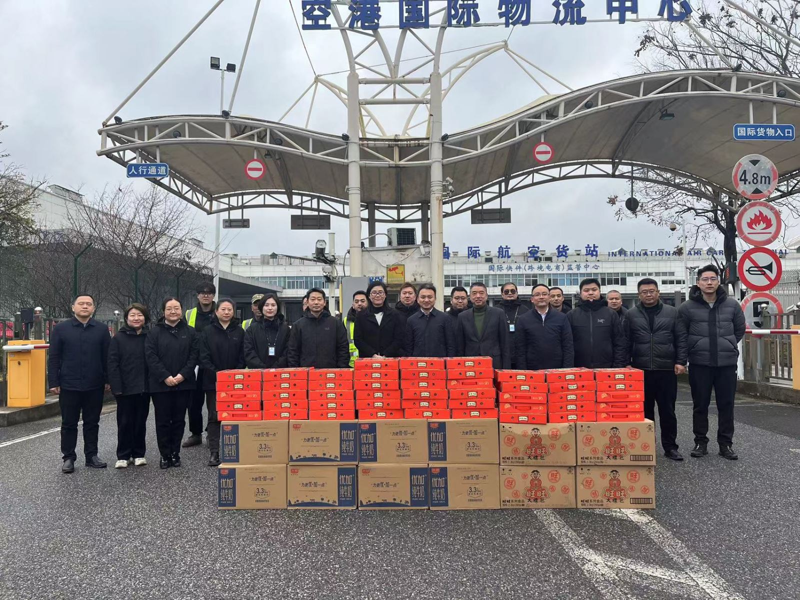 在无锡空港物流有限公司,朱晓峰为在严寒和低温天气中奋战一线的货场职工们送上了慰问品和节日祝福,为他们这一年里作出贡献表示感谢。叮嘱大家干好本职工作的同时,要注意身体、注意保暖。希望大家继续保持高昂的斗志和良好的精神状态,增强安全意识,做好各项服务保障工作。