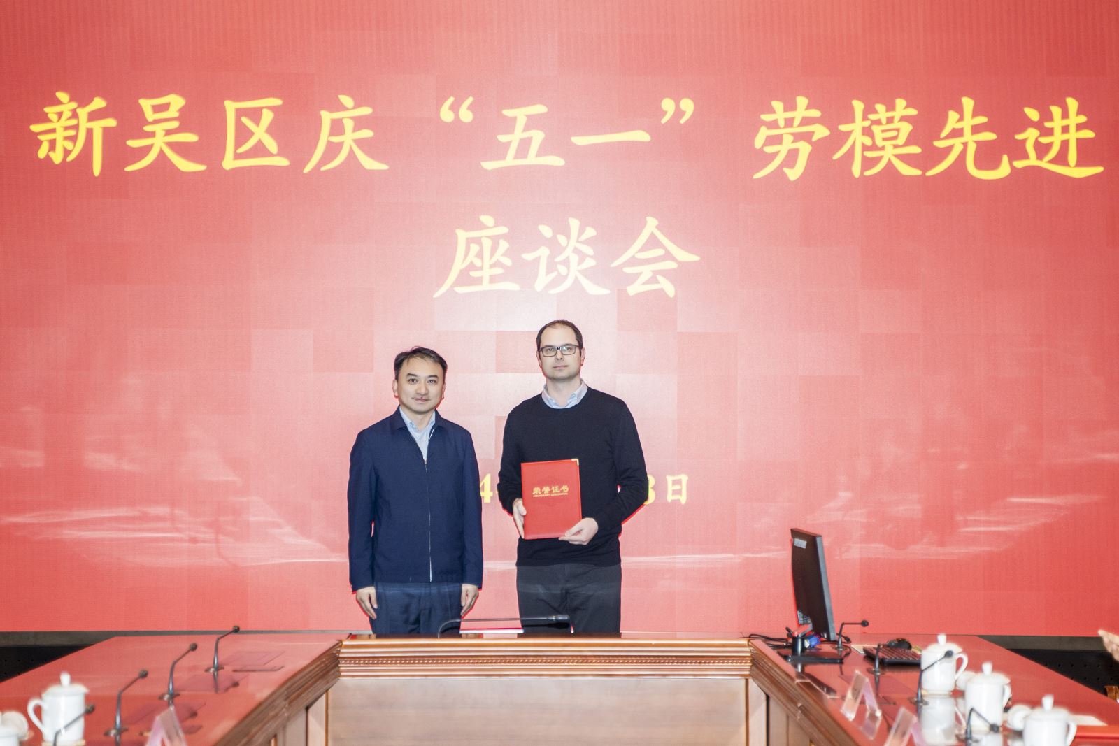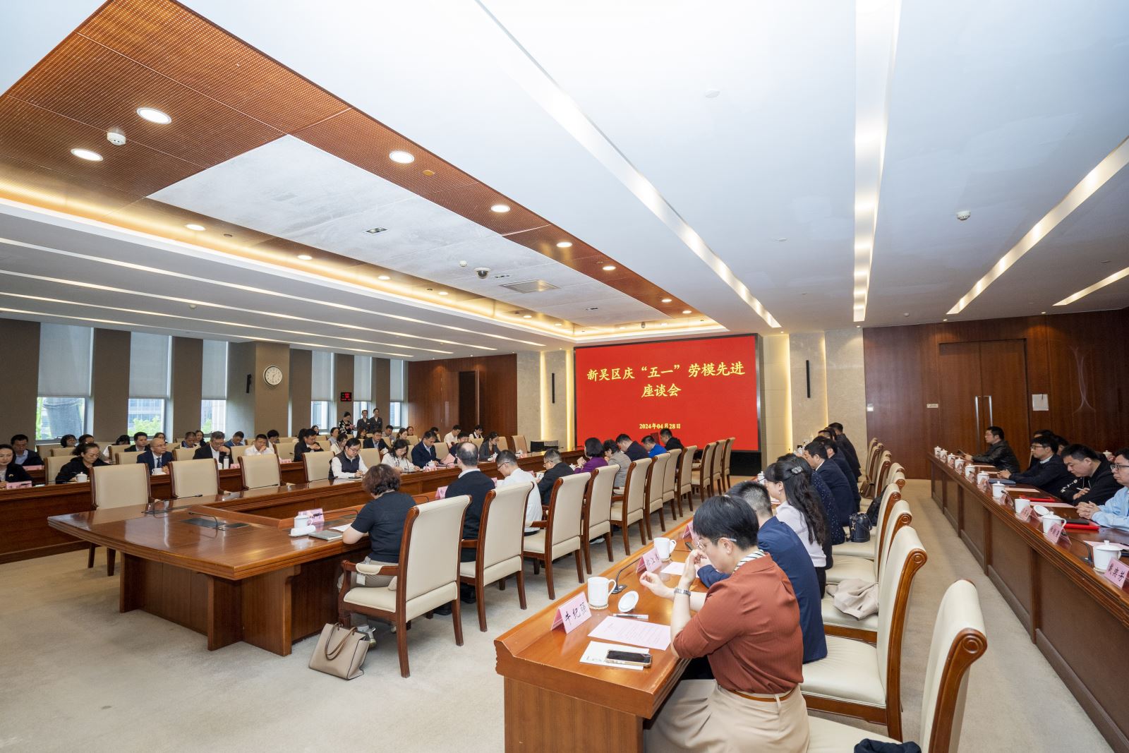 4月28日下午,新吴区召开“庆五一”劳模先进座谈会。高新区党工委委员、新吴区委常委、宣传部部长、总工会主席朱晓峰出席座谈会,区总工会党组书记、副主席夏同军主持座谈会。区总工会党组成员,空港经开区、各街道党工委分管领导、工会负责人,各街道(园区)、直属企事业单位工会负责人,新吴区2024年全国、江苏省五一劳动奖表彰单位和个人代表、历届各级劳动模范和先进工作者代表、新吴区2024年“平凡岗位不平凡员工”和“优秀外籍员工”代表、职工代表等参加座谈会。