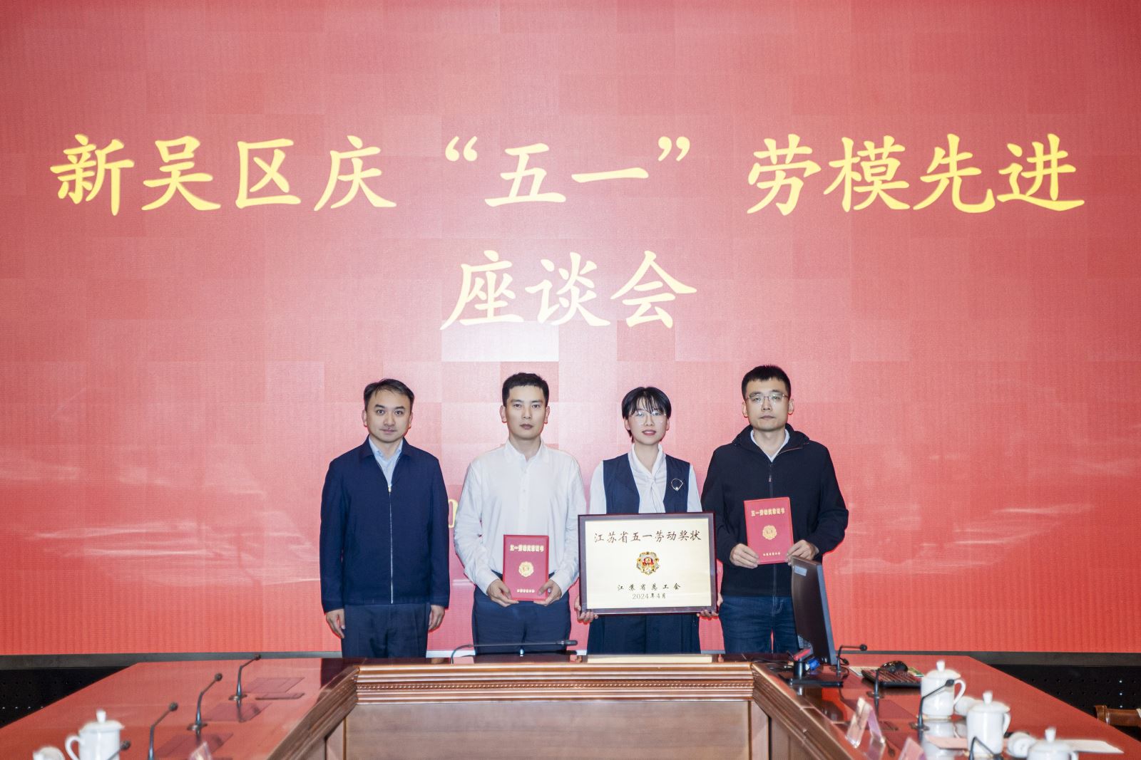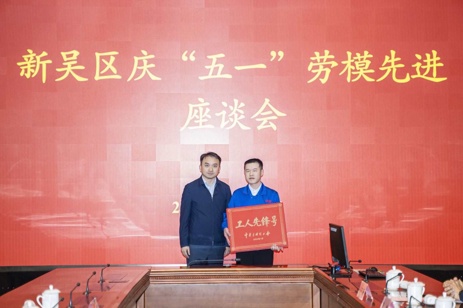 座谈会上,宣布获得2024年全国、江苏省五一劳动奖名单,宣读新吴区表扬“平凡岗位不平凡职工”、“优秀外籍职工”通报。朱晓峰为获得2024年全国工人先锋号,江苏省五一劳动奖状、五一劳动奖章、工人先锋号,新吴区平凡岗位不平凡职工、优秀外籍职工代表颁奖。座谈会上劳模先进代表进行了交流发言,全国工人先锋号无锡智能自控工程股份有限公司生产部金工车间数控班张静、江苏省五一劳动奖章无锡小天鹅电器有限公司苗雨来、新吴区平凡岗位不平凡员工无锡松下冷机有限公司俞斌和新吴区优秀外籍员工博世动力总成有限公司斯马德分享了他们的经验和感悟。