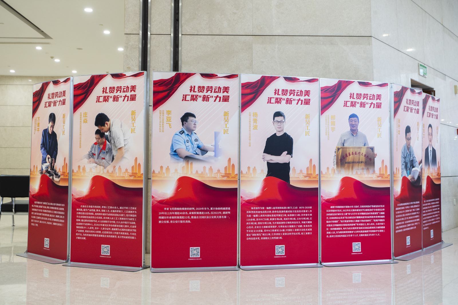 五一前夕,新吴区总工会还开展了庆“五一”系列活动。举行劳模工匠先进事迹展,以全国劳动模范、全国五一劳动奖章、江苏省五一劳动奖章、江苏省五一劳动荣誉奖章、无锡市劳动模范、新吴工匠等先进人物,在新吴区科技商务中心一楼图文并茂展示劳模工匠群体形象。制作劳模工匠宣传视频,利用显示屏、公众号等宣传设施和平台,播放节庆宣传画面及劳模视频,进一步弘扬劳模精神、劳动精神、工匠精神,营造人人学劳模、个个争先进浓厚氛围。区各基层工会也纷纷采取多种形式进行庆祝“五一”学习劳模先进等活动。