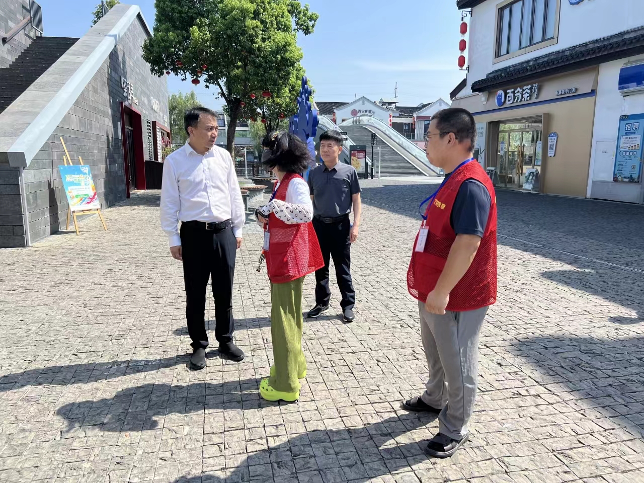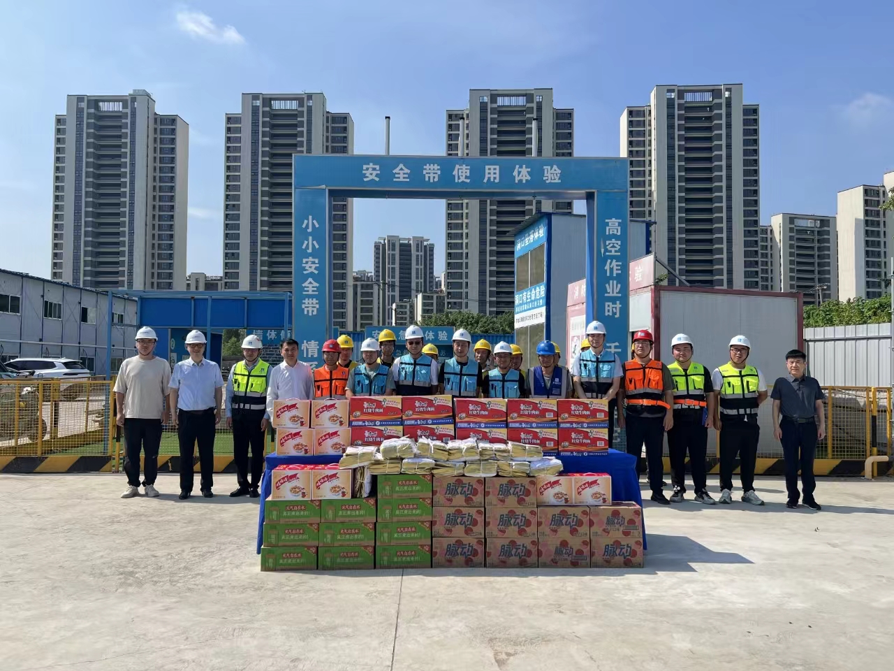 在伯渎河文化中心项目,朱晓峰询问了项目进展、安全生产和降温防暑等工作,对他们的坚守与付出表示衷心感谢,并送上慰问品。朱晓峰叮嘱要关注施工安全,切实采取防暑降温措施,科学安排工作时间,为一线工作人员创造良好的生产作业环境和条件。