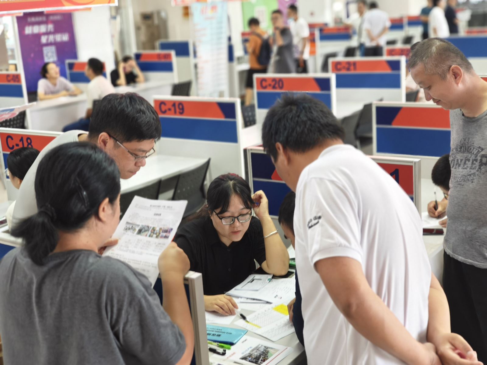 此次招聘会通过“线上+线下”双渠道招聘模式,搭建求职者和用人单位之间的高效沟通桥梁。线下招聘会吸引35家企业参会,涵盖信息技术产业、新能源、机械制造、家电、智能科技、化妆品等多个行业,提供工程师、技术研发、采购、设计、销售、操作工、质检员等岗位1000余个。