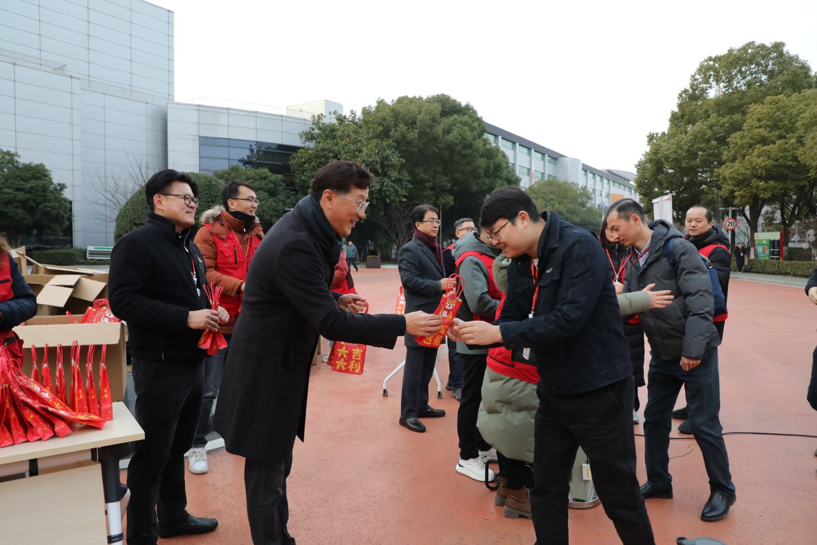 初八一早的天气虽然寒冷,但喜庆的音乐、诚挚的祝福、红红的礼包、喜悦的笑容,让现场氛围与内心充满了“温暖、祥和、幸福”。