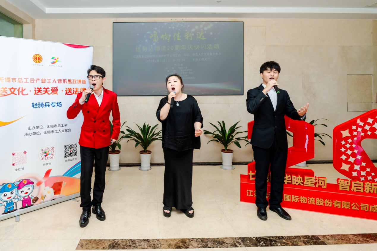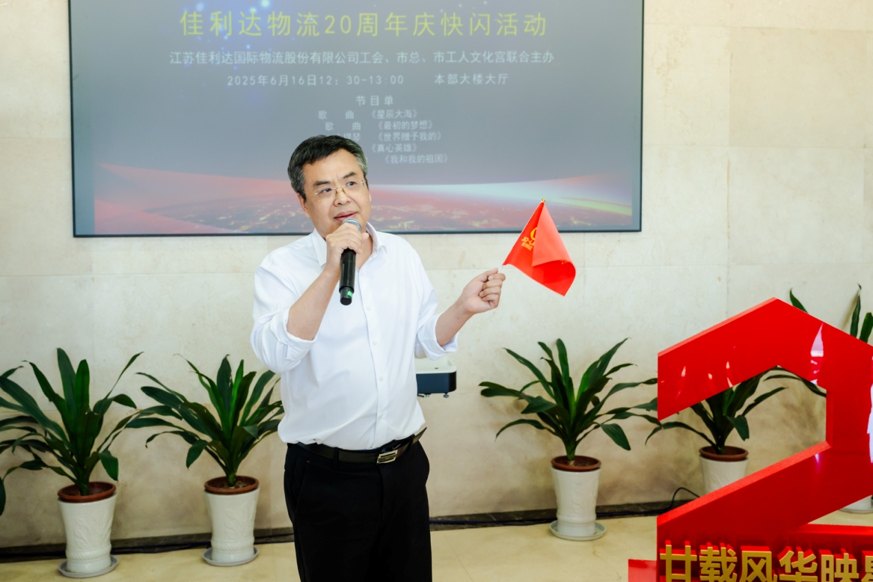 为庆祝江苏佳利达国际物流成立20周年,营造积极向上、团结奋进的文化氛围,6月16日中午,江苏佳利达公司工会精心策划并成功举办了“唱响佳利达”20周年司庆主题快闪活动。董事长潘红斌、党工委员代表、工会、新就业形态货运驾驶员代表及其他众多员工共同参与了这场激情洋溢的活动。.jpg)