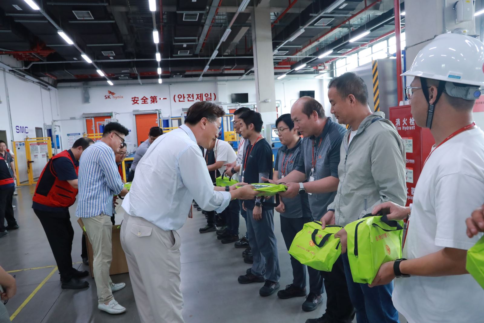 8月5日下午,FAB 担当 Billy Lee,经营支援担当 Alex、无锡 HR Richard Lee与公司工会、党支部工作者们,前往资材仓库、电气,CUB2建筑、以及C2F CMS 高温作业岗位,向成员们送上了包含“蕉下防晒三件套,冰贴,吸汗毛巾”等防暑降温慰问品。每到一处,担当们都与成员们一起亲切交流,对成员们在高温天气下坚守岗位,辛勤工作的奉献精神,给予了高度赞扬和衷心感谢;Fab 担当在慰问现场嘱托成员们与随行的部门管理者在高温天气下,应注意科学合理安排工作和作息时间。此次慰问活动不仅让员工感受到了关怀与温暖,更极大地鼓舞了员工们的工作热情。
