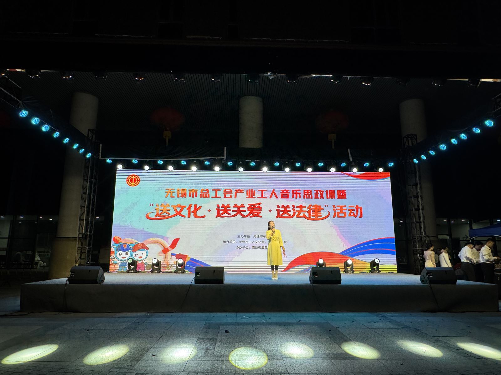 9月23日晚上,由无锡市总工会主办,无锡市工人文化宫、新吴区总工会承办,硕放街道总工会协办的“送关爱·送法律·送文化”活动如期在硕放便民服务中心广场开演。活动现场人头攒动,热闹非凡,数百名职工群众聚集一堂,为精彩节目演出鼓掌喝彩。