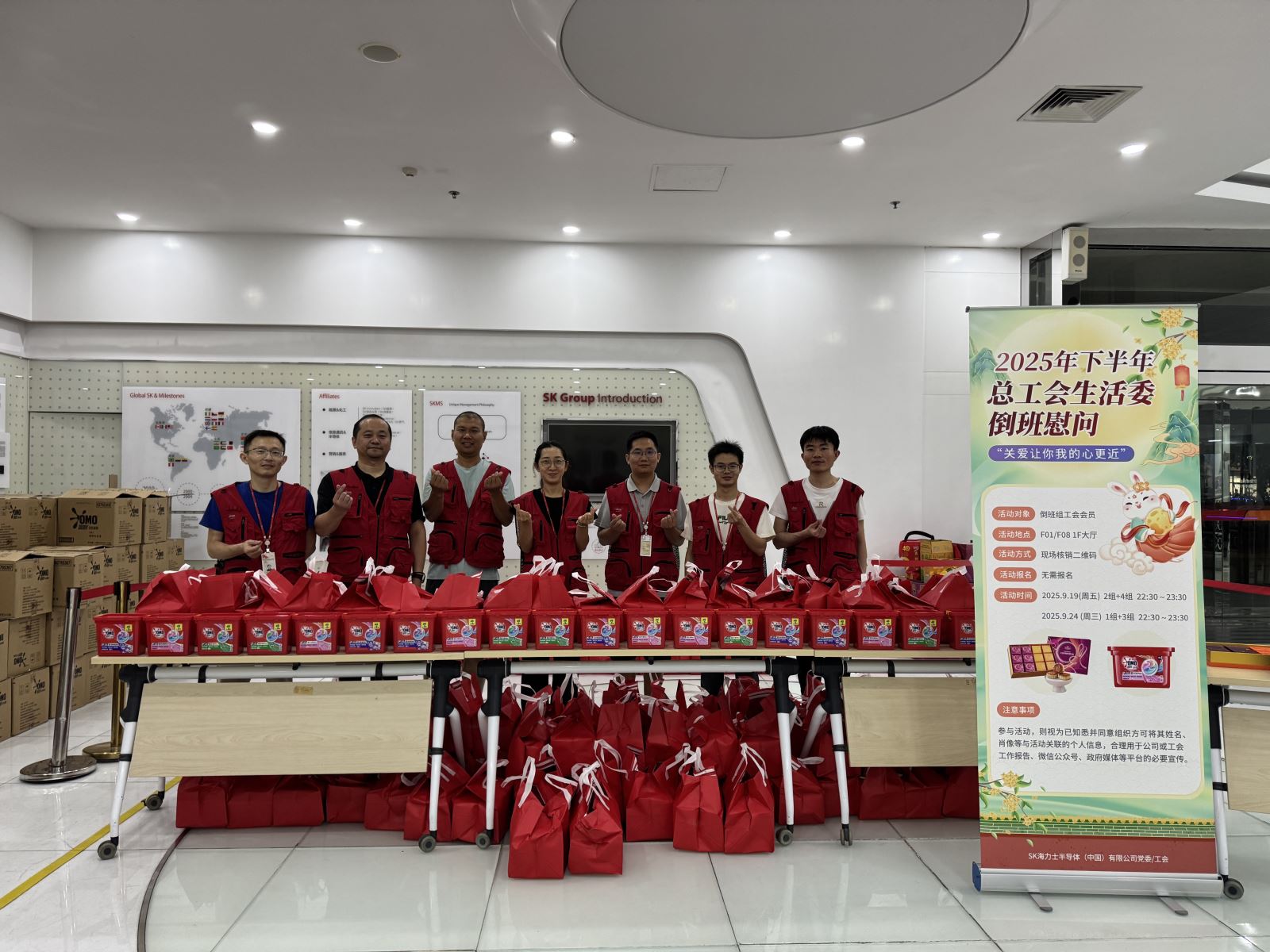 金秋送爽,丹桂飘香。在国庆,中秋双节来临之际, SK海力士党委、工会生活委精心策划,开展了一次温馨的节前倒班慰问活动,送上节日祝福和慰问礼物,为此表达感谢与关怀。