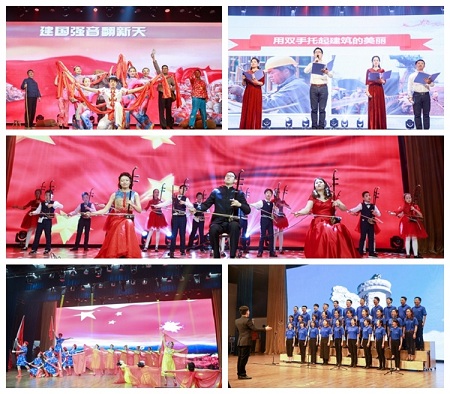 汇演在大合唱《歌唱祖国》中拉开帷幕,由各街道、园区工会和教育直属工会共同带来的19个节目轮番上演。情境歌舞串烧《辉煌70年》、舞蹈《红旗颂》、二胡齐奏《我的祖国》、萨克斯风独奏《走进新时代》、大合唱《歌唱祖国》、歌曲串烧《走进新时代,共筑中国梦》都抒发了广大职工群众爱党、爱国的真情实感和新中国成立以来取得的巨大成就,展示人民群众的获得感和幸福感;朗诵《你是楷模,你是榜样》热情讴歌了新吴区各类典型劳模代表、建筑工人、抢修工人等爱岗敬业、争创一流的事迹,号召大家向他们学习,做辛勤劳动、诚实劳动、创造性劳动的表率;舞蹈《书简》、笛子独奏《卷珠帘》、戏曲联唱、杂技舞蹈《彩绸飞舞》营造了浓浓的中国风,展示了职工们对中国古典文化的传承,领略到传统文化的古典美;歌伴舞《绒花》、《荷塘月色》、舞蹈《卡路里》、《光影青春》、《DU.BANG.TIME 》、《江南花雨》和独唱《母亲》、《海阔天空》展现了新吴年轻一代职工风采,彰显青春活力积极向上的良好精神风貌。