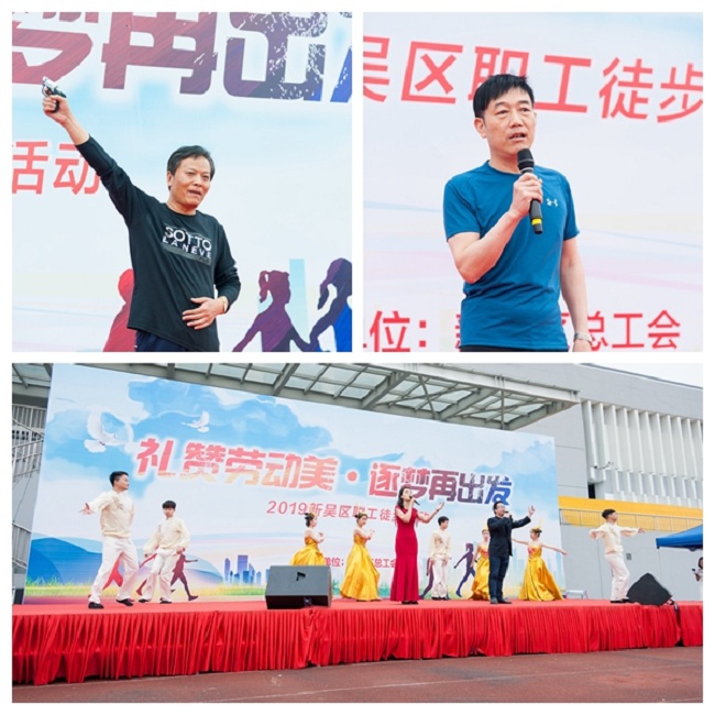 徒步活动开幕式在无锡科技职业学院举行。各街道(园区)工会、机关工会、公安检察院法院工会、教育税务市场监督管理工会、国企工会千名职工组成15支徒步方队。徒步活动在歌舞声中开场,来自企业职工表演的《卡路里》、《荷塘月色》和《我和我的祖国》点燃了全体徒步参与者的热情。随后15支徒步方队排列整齐、挥舞队旗、高喊口号、歌声嘹亮、展示创意,穿行在生态园绿荫花丛之中,形成一道职工激情昂扬的靓丽风景线。此外为体现徒步活动的创意性和各基层工会的组织力,还在徒步活动中进行最佳组织奖、最佳创意奖和“最美风景·领跑英姿”摄影比赛。