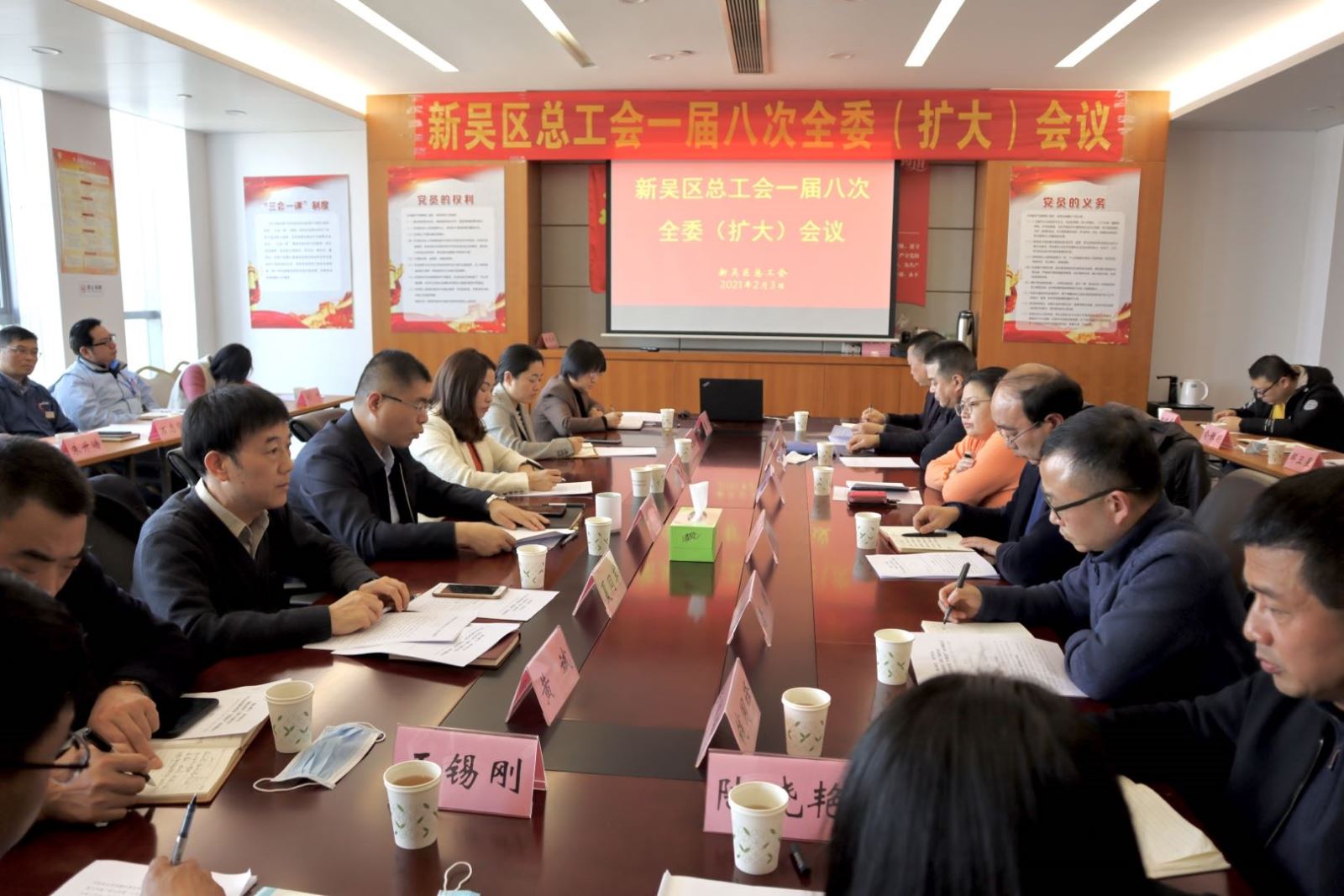2月3日下午,新吴区总工会召开一届八次全委(扩大)会议,深入学习贯彻党的十九届四中、五中全会精神,认真落实区委和上级工会部署要求,报告总结2020年工作,部署2021年任务。高新区党工委委员、新吴区委常委、组织部部长、区总工会主席韩杨出席会议并讲话,区总工会党组书记、副主席夏同军作报告并主持会议。