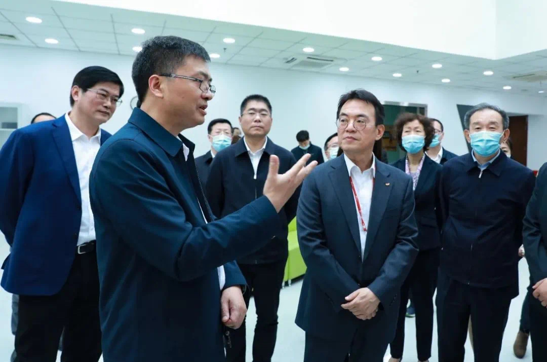 4月21日上午,全国推进产业工人队伍建设改革工作经验交流会在无锡召开。4月21日下午,中华全国总工会党组书记、副主席、书记处第一书记,推进产业工人队伍建设改革协调小组组长陈刚带领推进产业工人队伍建设改革协调小组成员单位有关领导、联络员,各省(区、市)、新疆生产建设兵团总工会主席和分管副主席,各全国产业工会主要负责同志,新时代江苏产业工人队伍建设改革联席会议成员单位负责同志,设区市产业工人队伍建设改革领导机构召集人,改革试点单位负责同志等来到我区SK海力士半导体(中国)有限公司实地参观企业产业工人队伍建设改革工作。市领导徐一平、陆志坚、区领导韩杨陪同参观。