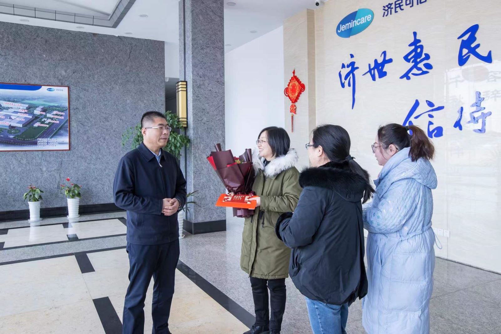 在无锡济煜山禾药业股份有限公司,韩杨与无锡市劳动模范朱音亲切交谈,详细询问了她的工作和生活情况,向她送上了市委市政府、区委区政府的诚挚问候和美好祝福。韩杨嘱咐她,要保重身体,立足岗位、坚守实干、创新奋进,持续发挥劳模、工匠精神,为广大职工树立榜样,为企业发展作出更大的贡献。