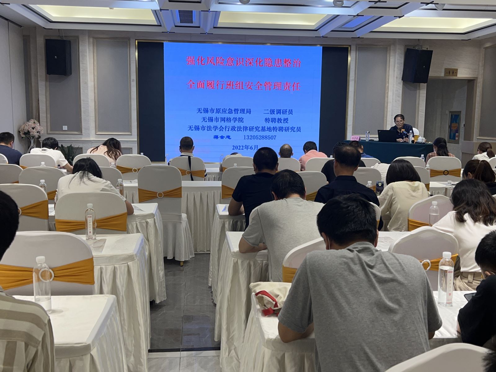 此次培训邀请了无锡市原应急管理局二级调研员、无锡市网格学院特聘讲师蒋会忠和无锡市安全协会蔡万龙进行授课。蔡万龙主要从习近平总书记关于安全生产工作的重要论述,国家部委和省委政府安全生产会议精神;车间、班组安全管理工作,班组安全建设和新《安全生产法》等方面进行了授课。蒋会忠以通过案例剖析、安全隐患图片的等鲜活生动的方式,深入浅出的给大家作了一期精彩的安全生产主题讲座。