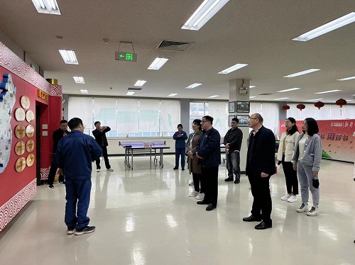 曹洪磊一行首先来到我区省级产改试点企业——无锡村田电子有限公司。实地参观了企业食堂和职工之家,听取了企业推进产业工人队伍建设改革试点工作进展情况的汇报,曹洪磊一行对企业积极打造职工活动阵地、重视职工教育培训、畅通职工成长成才通道等做法给予了肯定和赞扬,表示相关经验做法值得在当地推广。