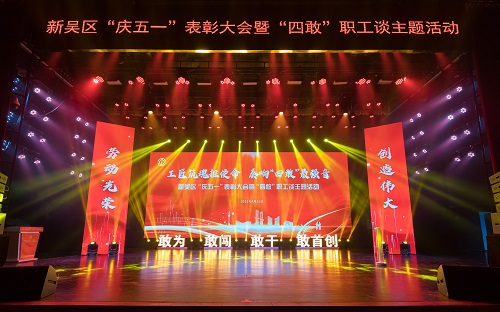 4月26日下午,新吴区隆重召开“庆五一”表彰大会暨“四敢”职工谈主题活动。无锡高新区党工委书记、新吴区委书记崔荣国,无锡市总工会党组书记、副主席吴涛,新吴区政协党组书记、主席焦夕莲,新吴区委副书记、区政府副区长、党组副书记李芬,新吴区人大常委会副主任、党组副书记祝君乔,无锡市总工会宣教部部长陈煜蕾,新吴区总工会党组书记、副主席夏同军参加活动。区各部委办局、人民团体、直属企事业单位和市有关单位驻区条线机构主要负责人,空港经开区、各街道党工委主要负责人、分管副书记、工会主席,各街道(园区)、直属企事业单位工会负责人,新吴区2023年全国、江苏省、无锡市五一劳动奖表彰单位和个人代表、劳动模范和先进工作者代表、首届“无锡大工匠”和“无锡工匠”获得者、第二届“新吴工匠”获得者、新吴区2023年“平凡岗位不平凡员工”和“优秀外籍员工”代表、职工代表等参加大会。