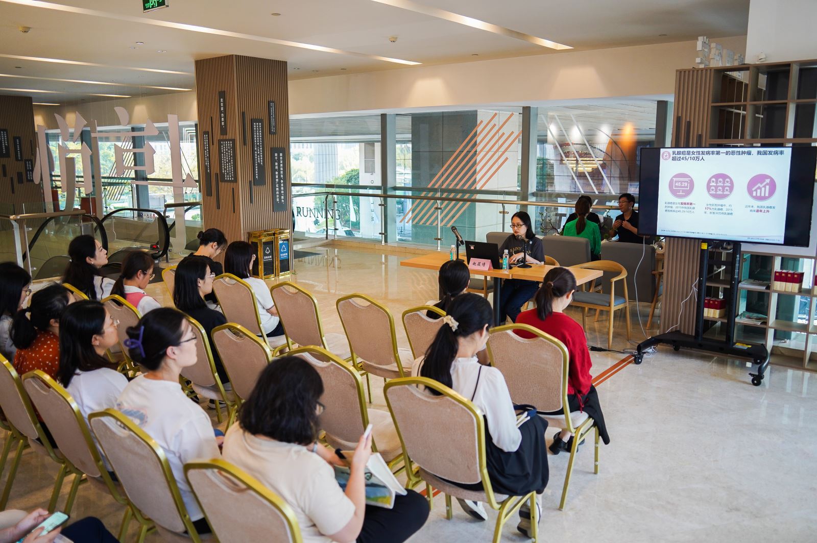 活动采取知识科普与爱心义诊相结合的方式,邀请到无锡市妇幼保健院两位重量级教授专家,开展女性健康知识讲座。讲座现场,无锡市妇幼保健院妇科主任赵邵杰教授、乳腺科副主任赵筱倩教授以丰富的专业知识、多年的临床经验及通俗易懂的语言,先后为在场的女性干部职工讲解了女性常见病、宫颈癌防治、乳腺癌防治、妇女保健等方面的知识,强调了养成健康生活方式、保持愉悦心情及定期体检的重要性,并建议大家学会进行自我检查,做到早发现、早诊断、早治疗。