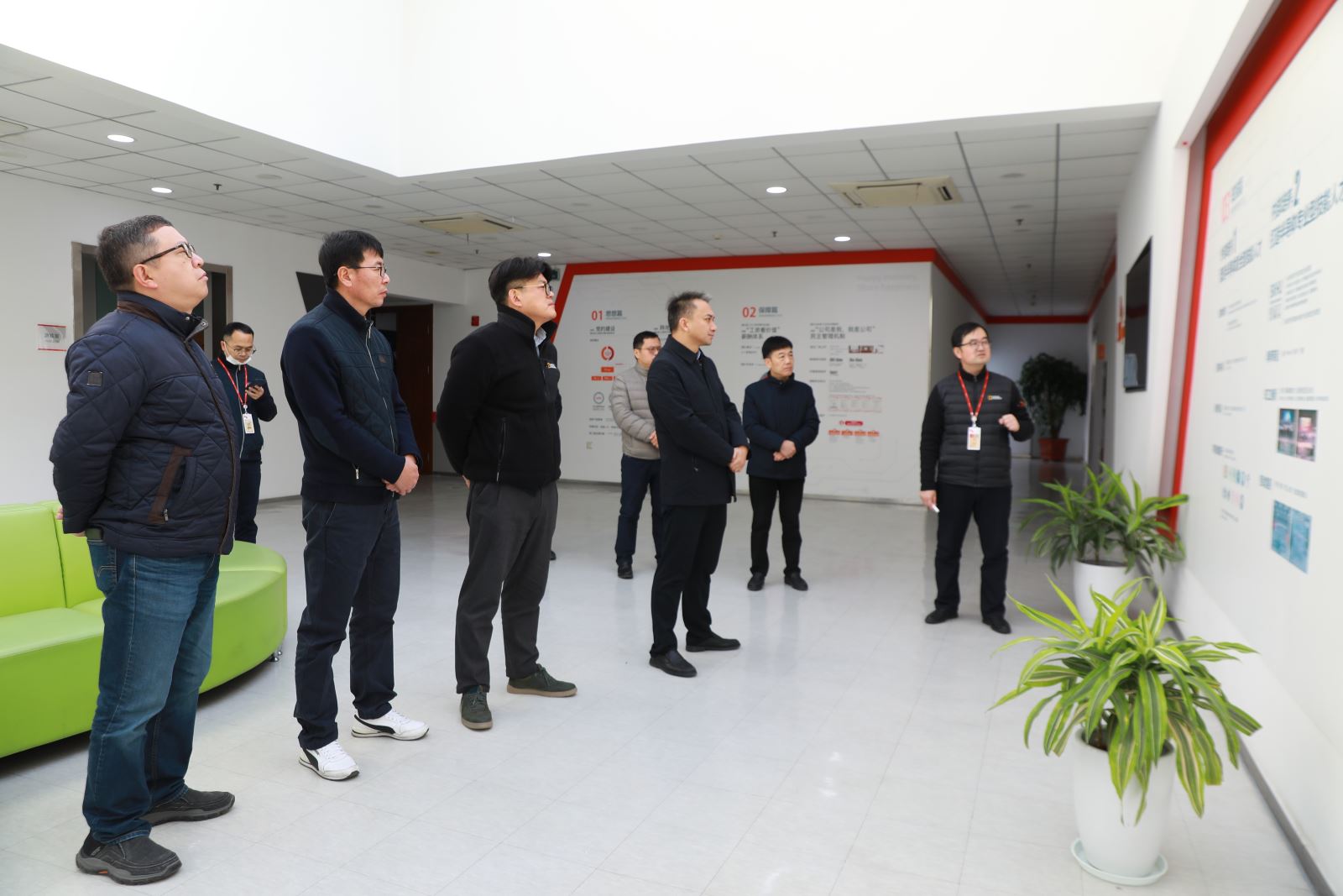 在SK海力士,朱晓峰一行首先参观了生产区,现场询问了海力士当前企业经营和低温作业职工劳动保护等相关工作情况,叮嘱年终岁尾要将安全生产和职工劳动保护作为重要关注点,关心关爱职工工作和生活。随后来到了职工之家,现场了解了推进产业工人队伍建设改革工作的路径图和职工生活、学习、文体娱乐阵地情况,听取了海力士公司关于构筑有思想、有保障、有知技、有发展、有关爱的职工队伍“五有”产业工人队伍建设改革工作情况介绍,全面了解海力士围绕产业工人队伍建设改革任务和助力企业创新发展,努力建设“五有”产业工人主力军的特色做法和成果。