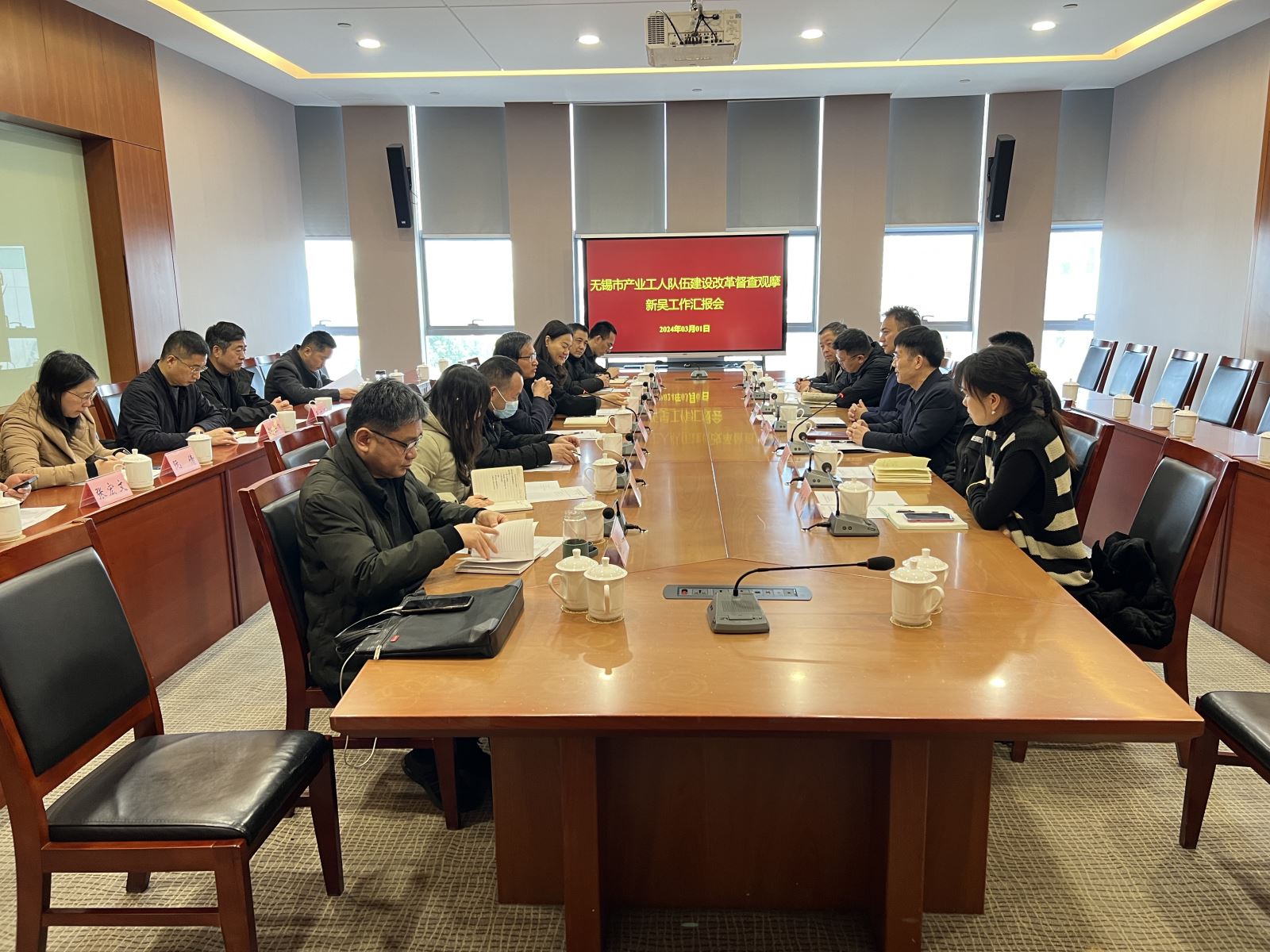 在产改工作汇报会上,市产改观摩组听取了新吴区2023年度产改工作情况的汇报,并现场查阅台账资料。2023年,