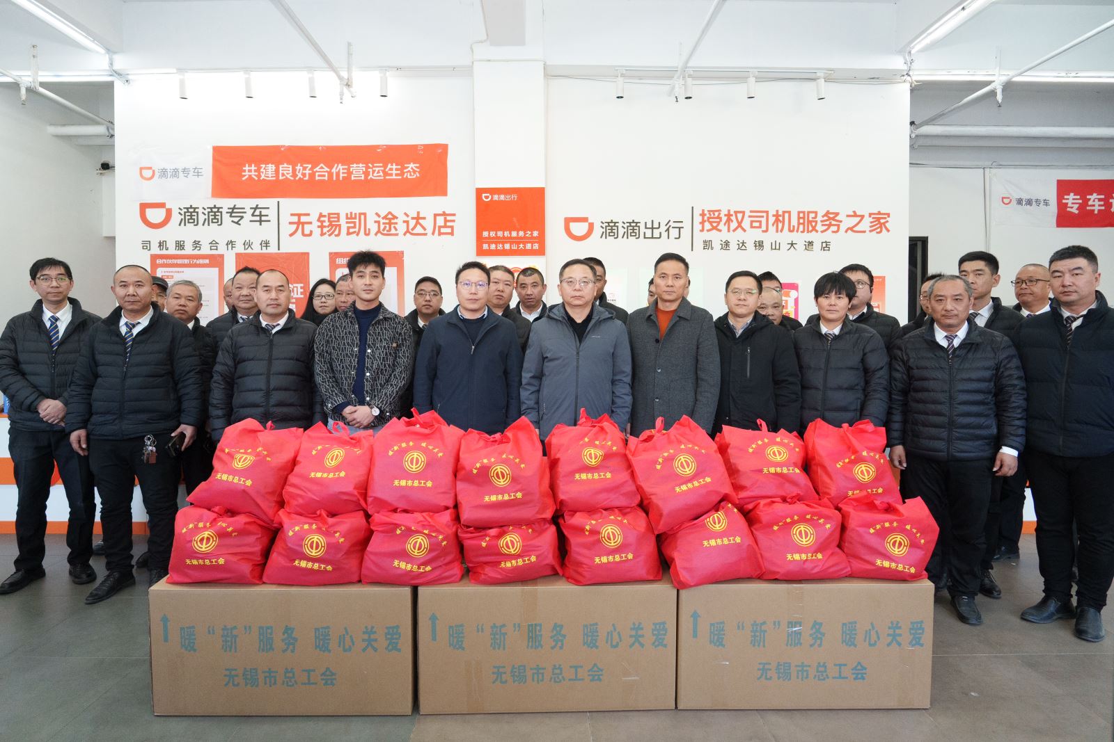 慰问组首先来到滴滴出行无锡分公司,为滴滴司机们赠送了冬季暖心礼包。于立鹏现场详细询问了滴滴司机们工作与生活情况,感谢他们在城市交通中作出的重要贡献,特别是在节假日和恶劣天气下依然坚守岗位,为市民提供便捷、安全的出行服务,并提醒大家要注意安全,时刻关心自身健康。